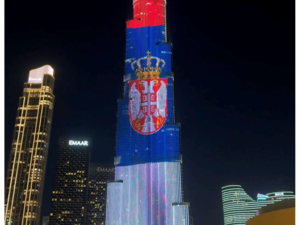 Najviša zgrada na svetu, Burdž Kalifa u Dubaiju, večaras je zasijala u bojama srpske zastave povodom Dana državnosti Srbije, objavio je na Instagram...