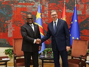 Predsednik Srbije Aleksandar Vučić priredio je danas ispred Palate Srbija svečani doček za predsednika Konga Feliksa Antoana Čisekedija Čilomba, nakon...