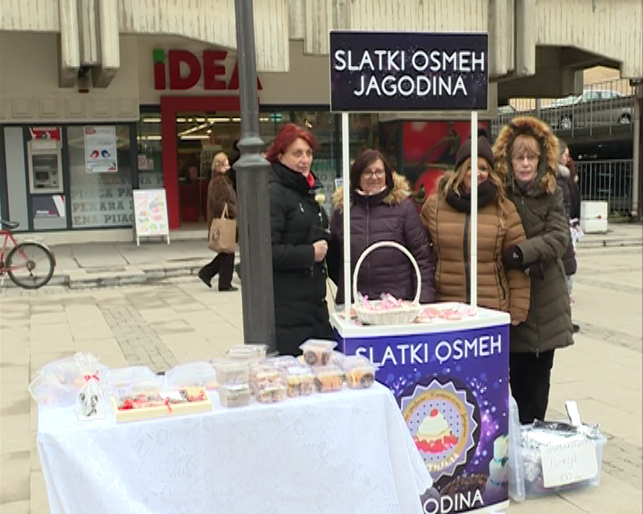 Udruženje „Slatki osmeh“ iz Jagodine organizovalo je tradicionalnu osmomartovsku humanitarnu akciju danas na platou u centru grada.