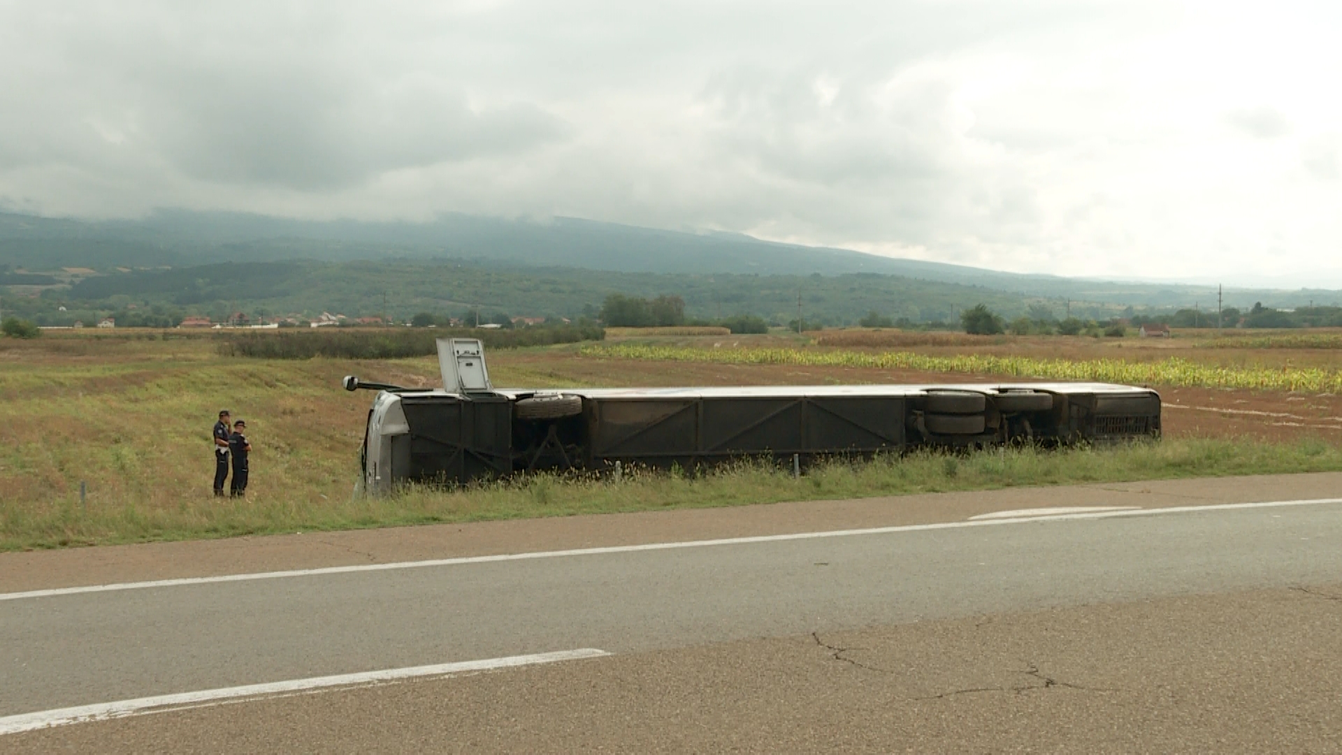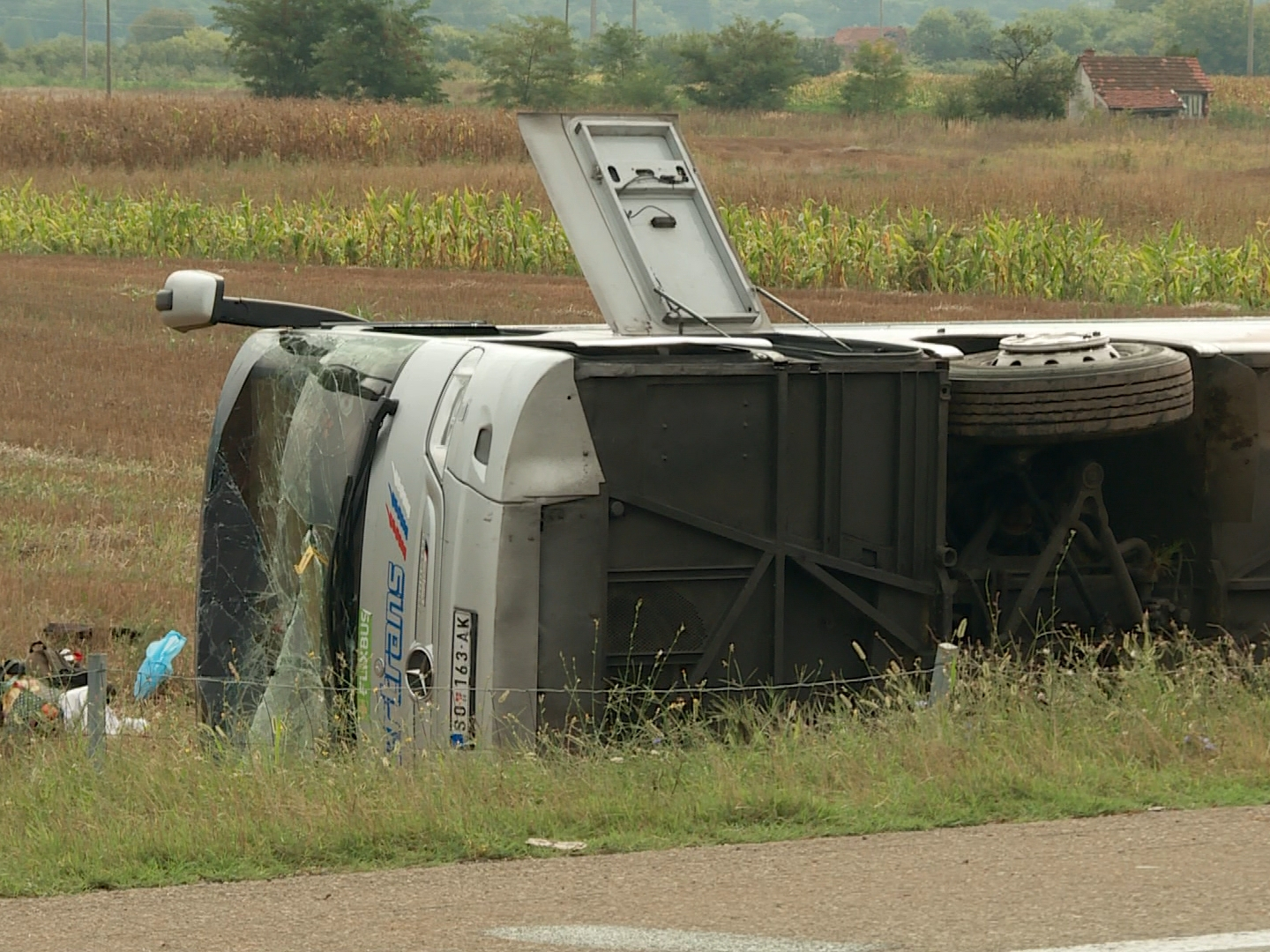 Autobus Severtransa iz Sombora sleteo je sa autoputa u reonu sela Breanovce. Prisebni putnici su polupali stakla i da izađu kroz polomljene prozore.