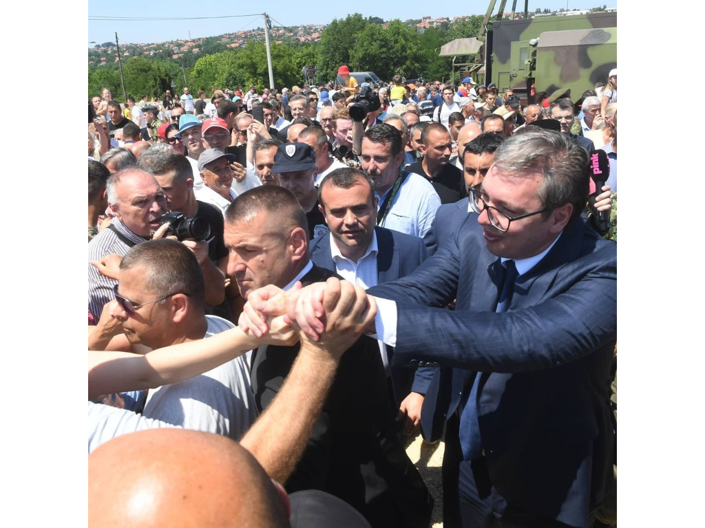 Vučić je na prikazu sredstava naoružanja i vojne opreme iz odbrambene industrije Srbije u Spomen parku "Šumarice" u Kragujevcu u razgovoru sa građanima podsetio da je u toku izgradnja obilaznice oko tog grada i najavio da toplana biti izmeštena iz centra grada.