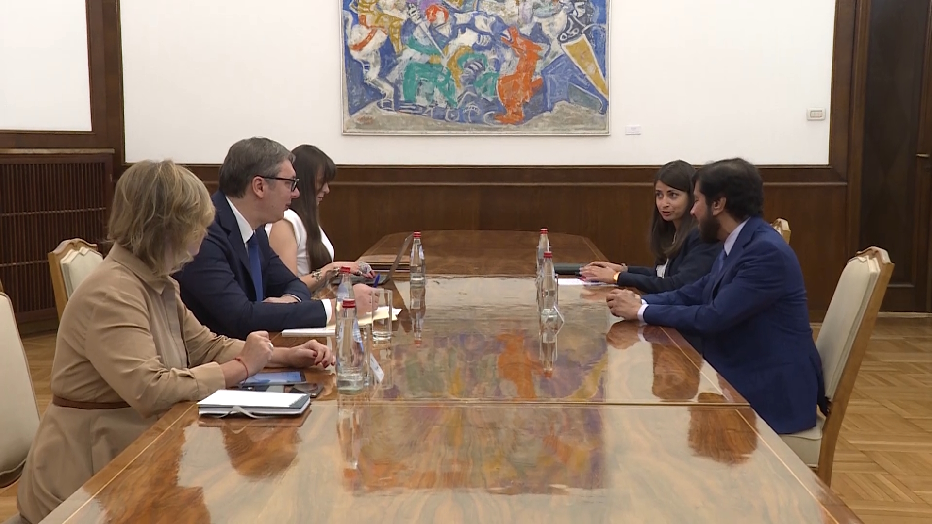 Takođe, ambasador Države Katar je predsedniku Vučiću uručio pismo katarskog emira šeika Al Tanija sa pozivom da prisustvuje Svetskom prvenstvu u fudbalu, koje se u novembru održava u Kataru.
