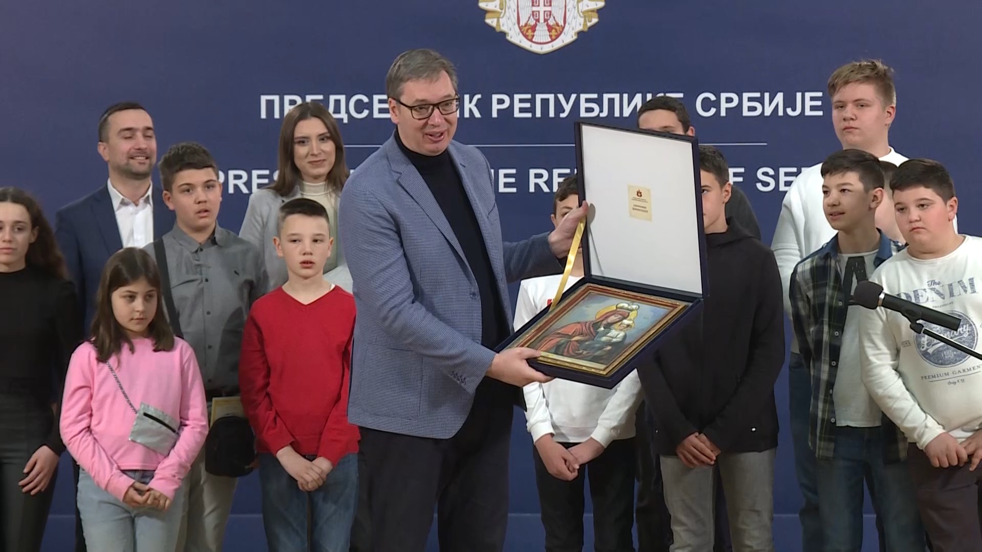 Vučić je od dece na poklon dobio ikonu Presvete Bogorodice.