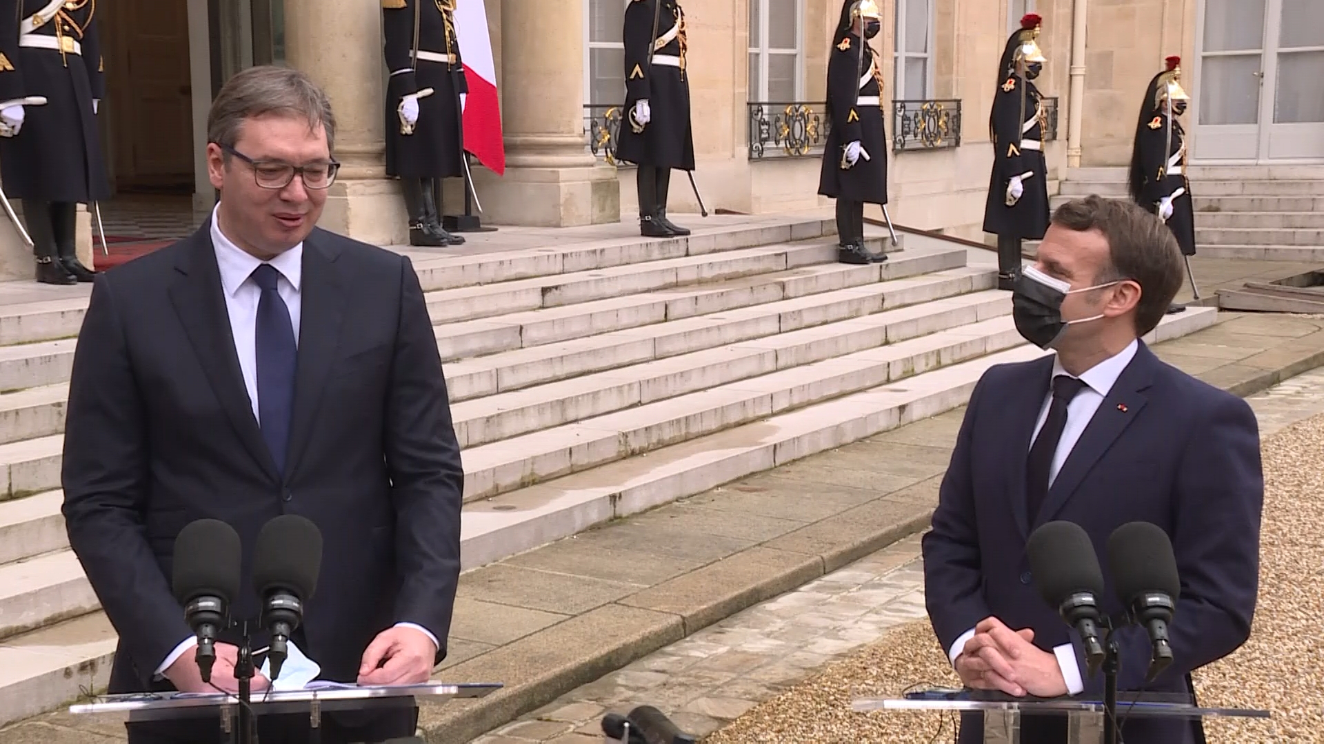 "Francuska je za nas važna zemlja i tradicionalni pravi prijatelj Srbije. Sa posvećenim pristupom Makrona nadamo se da možemo da rešmo probleme ali i da povećamo ekonomsku saradnju i trgovinsku razmenu koja je 2019. bila milijardu i 200 miliona evra", istakao je Vučić u obraćanju medijima zajedno sa Makronom.