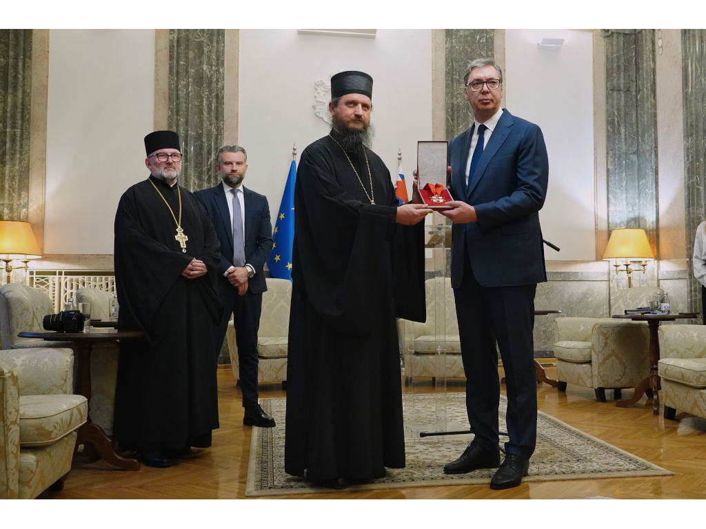 Predsednik Srbije Aleksandar Vučić izjavio je danas da Orden Novomučenika bihaćko-petrovačkih, koji mu je uručio episkop bihaćko-petrovački Sergije, ne prima kao lično uzvišenje, nego kao pečat duhovnog zajedništva i istakao da je taj orden poziv na još veću odgovornost.